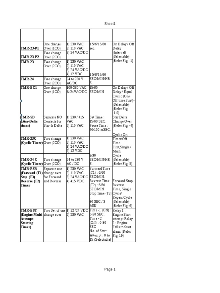 TMR-EST Two Set of one 1) 12 /24 VDC Time -1 (ON) : Relay 1 :