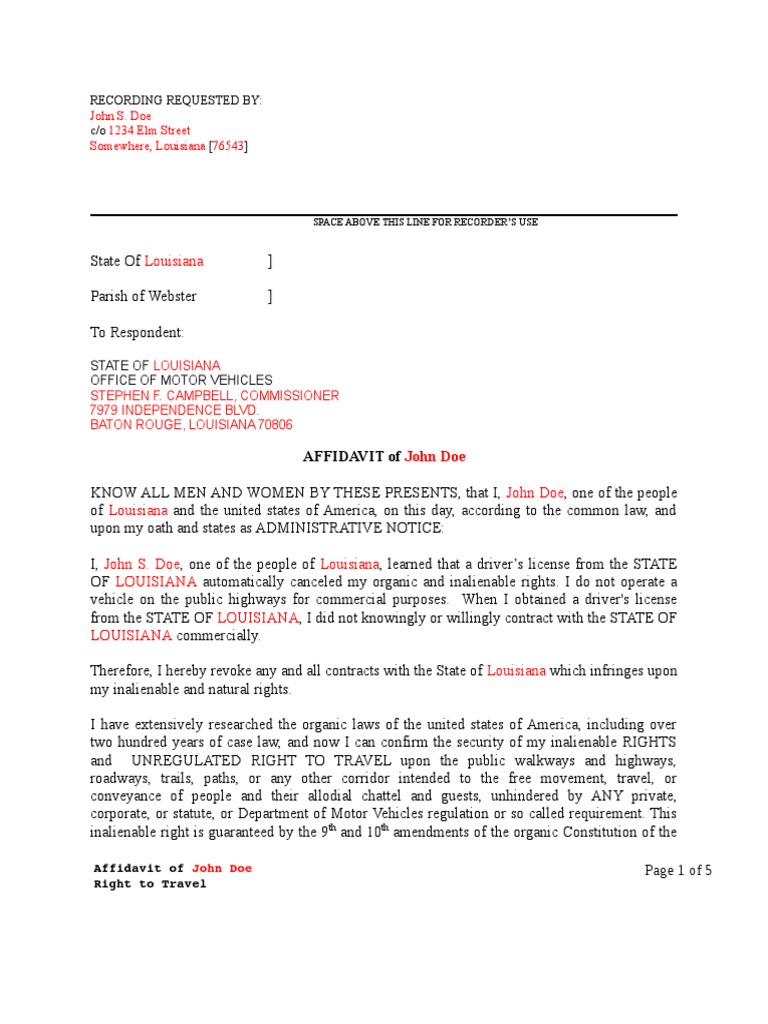 Affidavit of John Doe Page 1 of 5