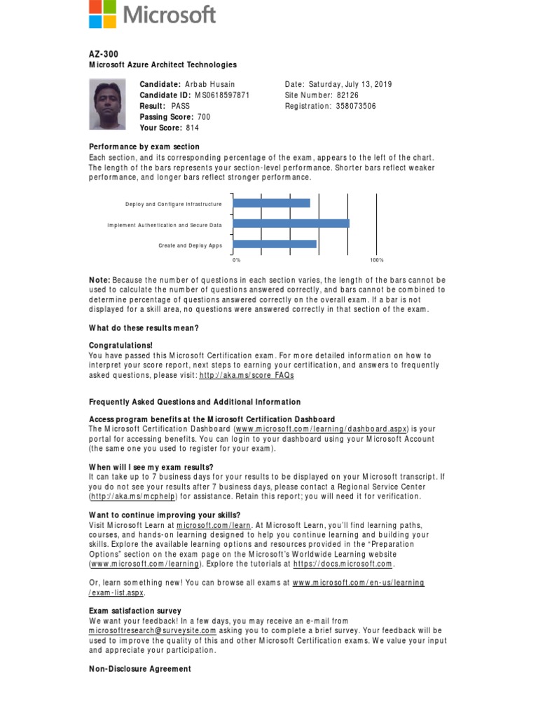 You have passed this Microsoft Certification exam. For more detailed information on how to
