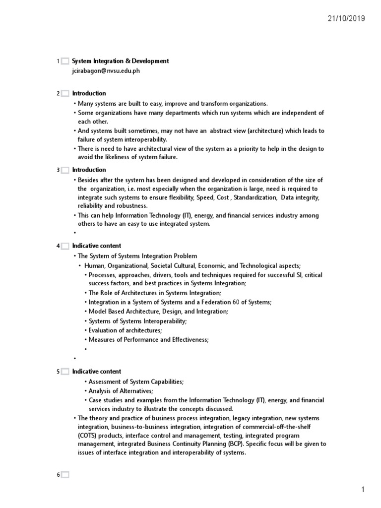 • Integration in a System of Systems and a Federation 60 of Systems;
