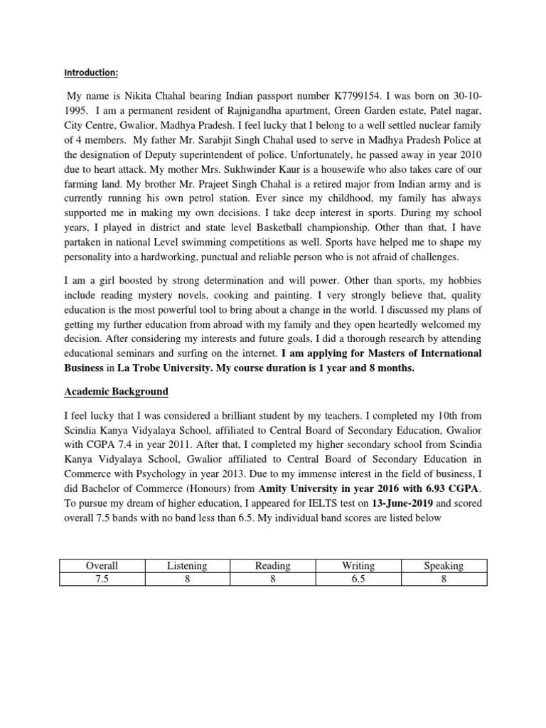 To pursue my dream of higher education, I appeared for IELTS test on 13-June-2019 and scored