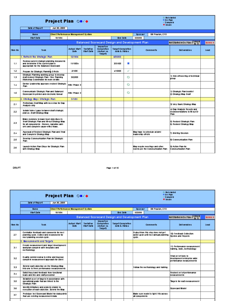 Balanced Scorecard Design and Development Plan Not Started mOn Plan n