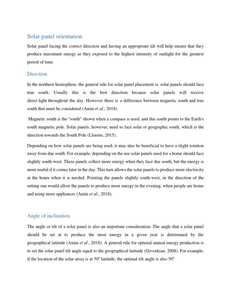 geographical latitude (Amin et al., 2018). A general rule for optimal annual energy production is