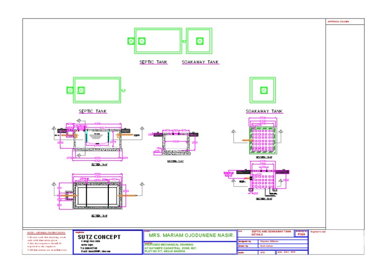 engineer client title SEPTIC AND SOAKAWAY TANK drawing no Engineer's seal