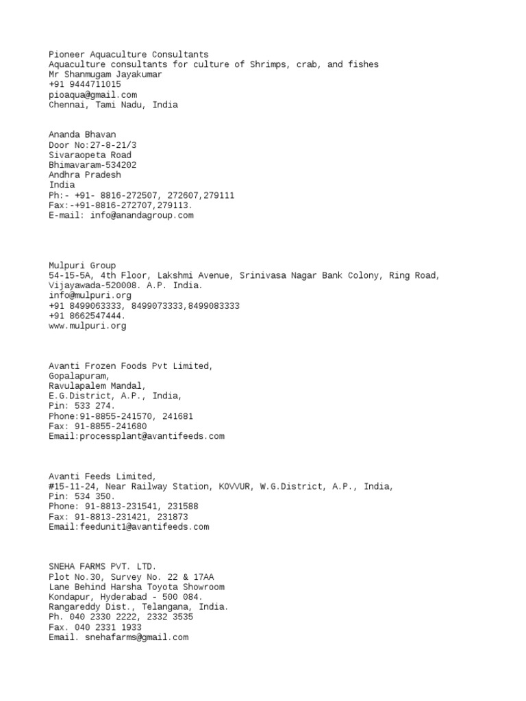 Aquaculture consultants for culture of Shrimps, crab, and fishes
