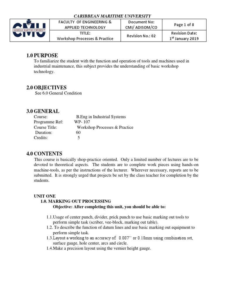 industrial maintenance, this subject provides the understanding of basic workshop