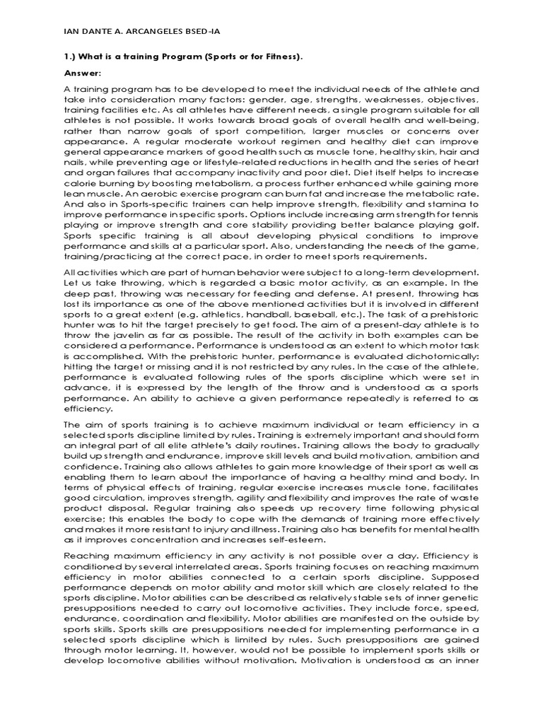 training facilities etc. As all athletes have different needs, a single program suitable for all