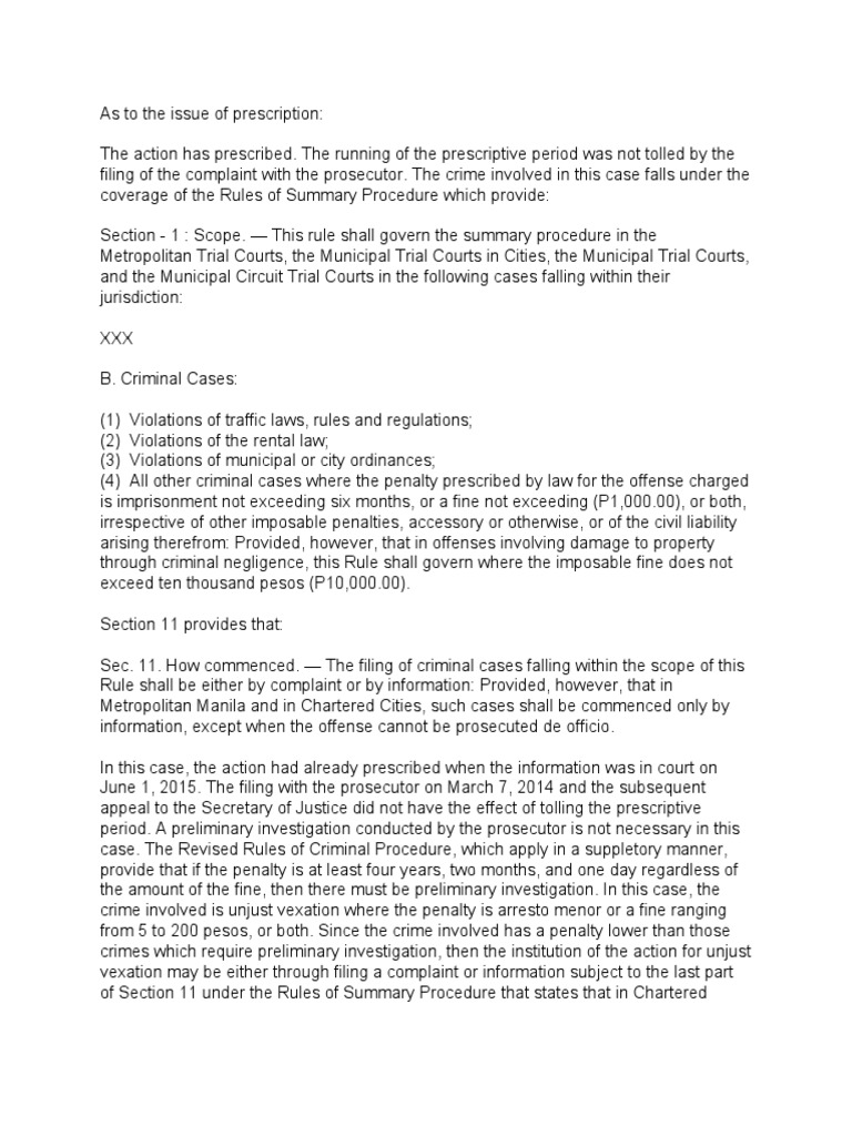 crime involved is unjust vexation where the penalty is arresto menor or a fine ranging