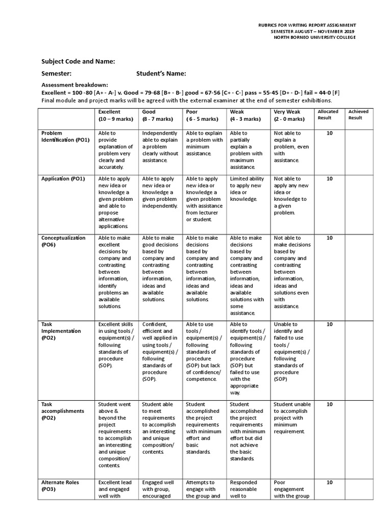 RUBRICS FOR WRITING REPORT ASSIGNMENT