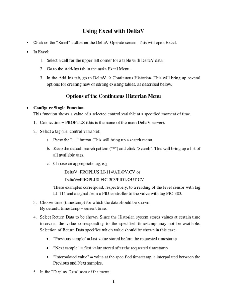 Using Excel with DeltaV
