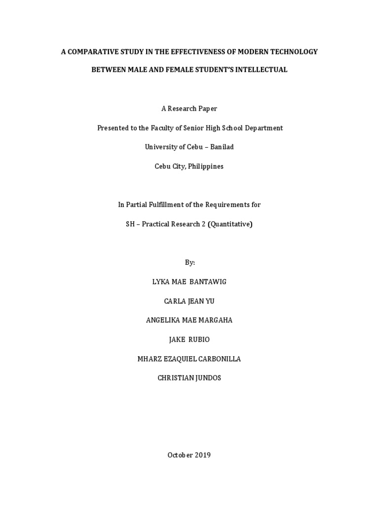 the effectiveness of modern technology by comparing male and female student’s intellectual and