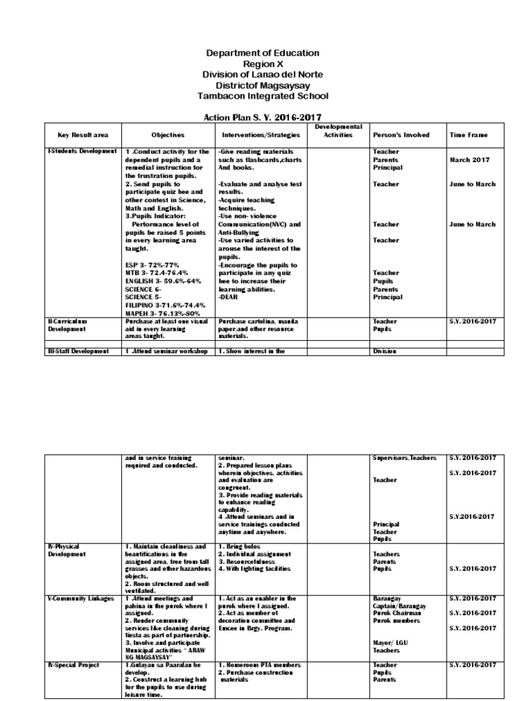 IV-Special Project 1.Gulayan sa Paaralan be 1. Homeroom PTA members Teacher S.Y. 2016-2017