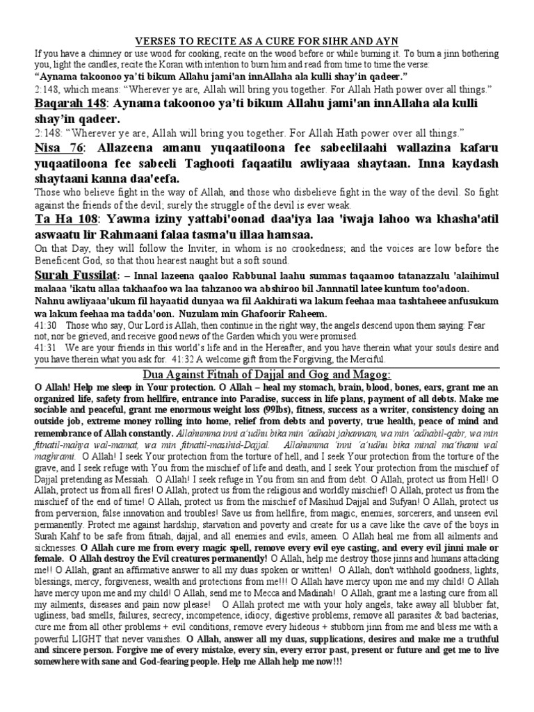 VERSES TO RECITE AS A CURE FOR SIHR AND AYN