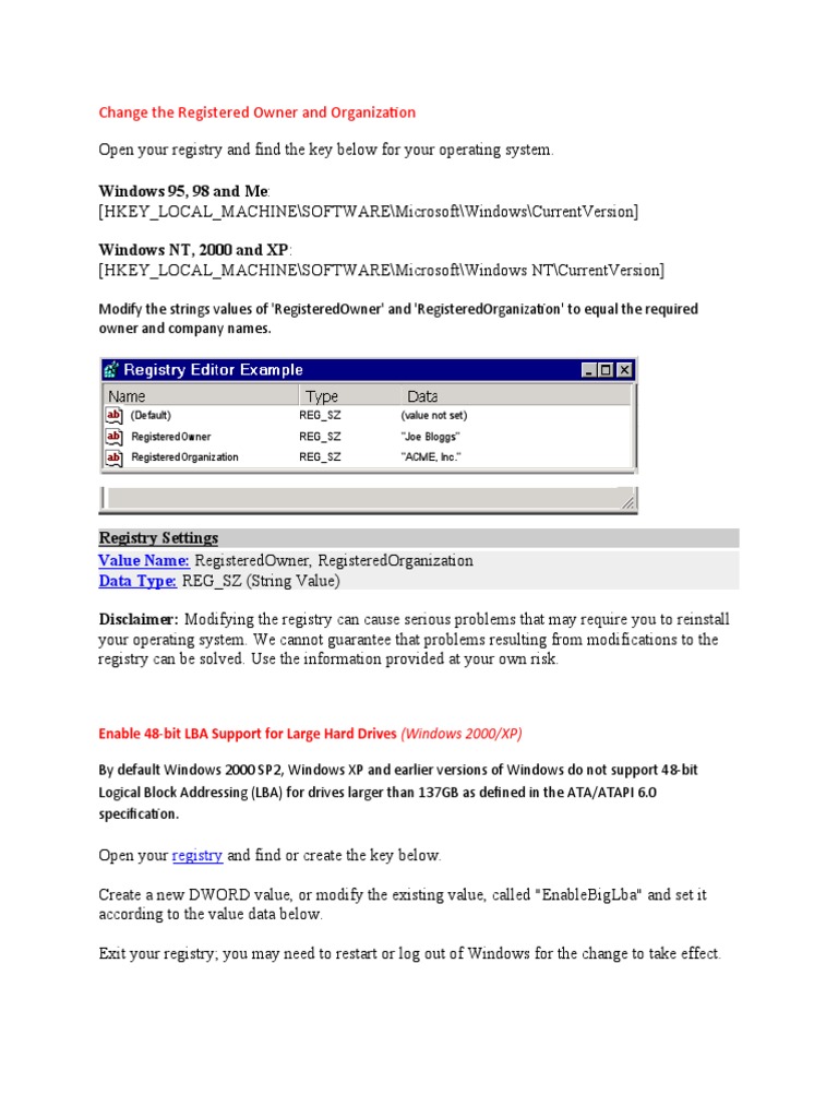 registry can be solved. Use the information provided at your own risk.