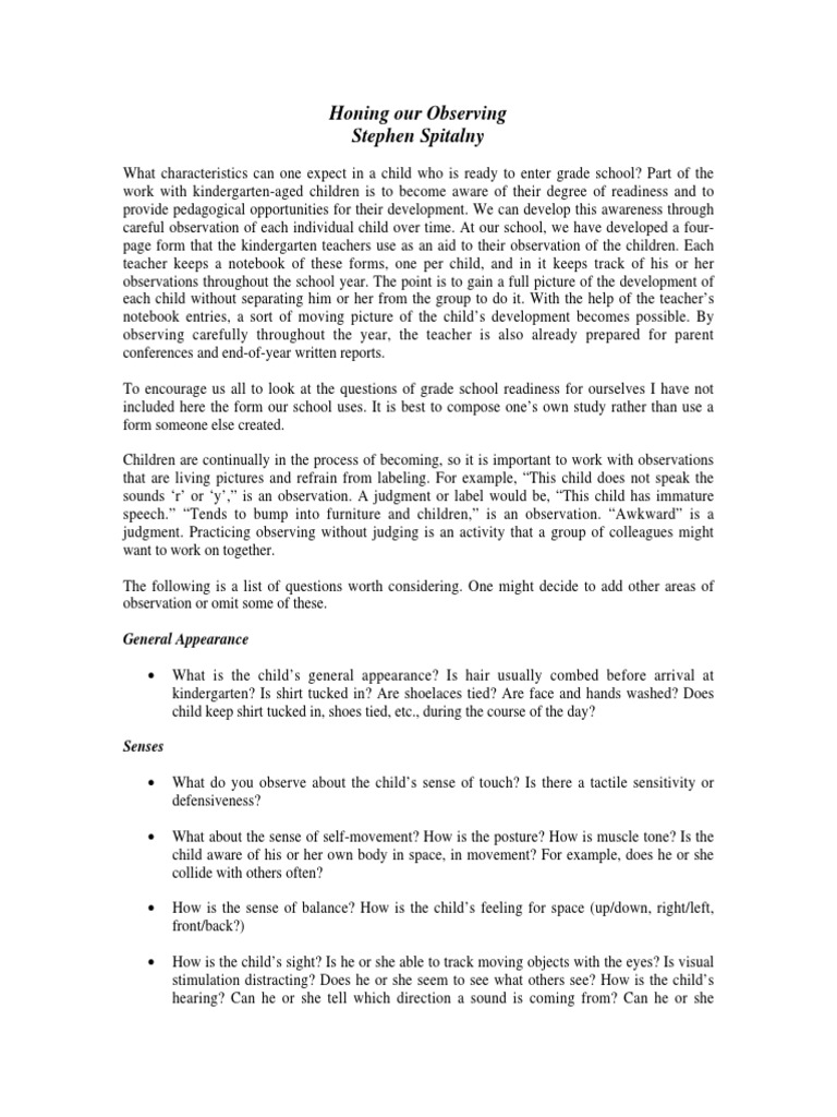 careful observation of each individual child over time. At our school, we have developed a four-
