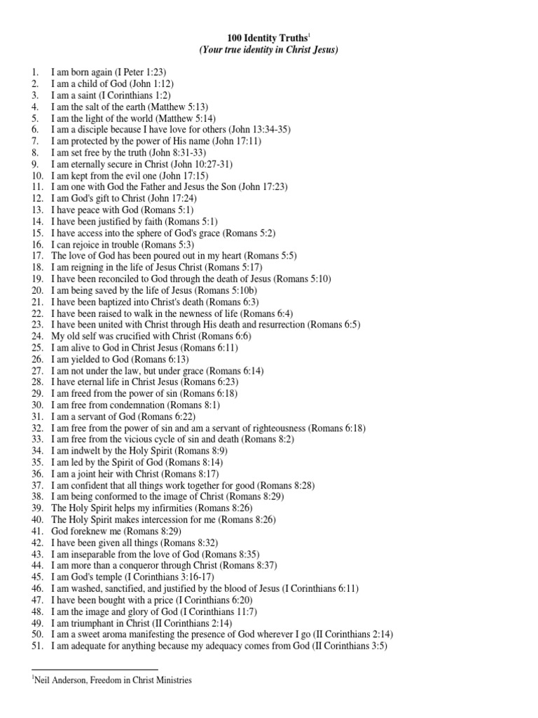 23. I have been united with Christ through His death and resurrection (Romans 6:5)