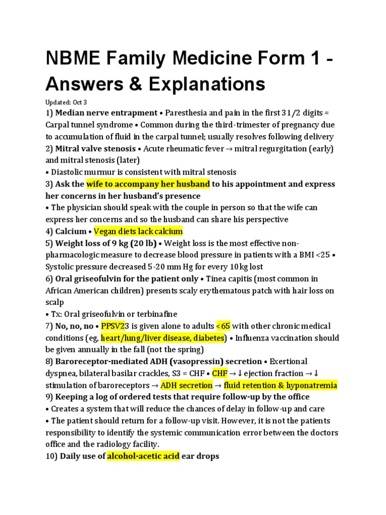 NBME Family Medicine Form 1 -