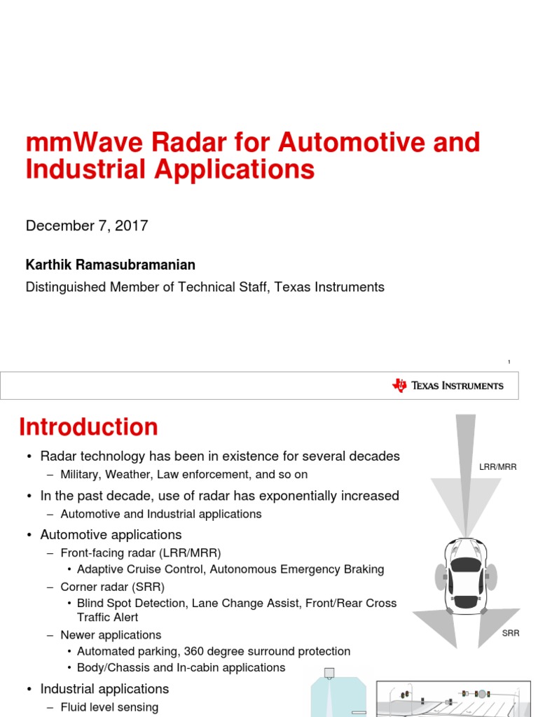 • TI offers a family of 77GHz radar devices for automotive and industrial applications