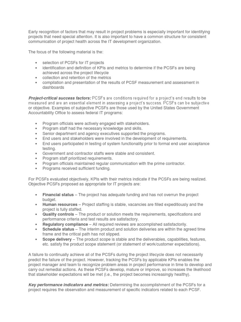 predict the failure of the project. However, tracking the PCSFs by applicable KPIs enables the
