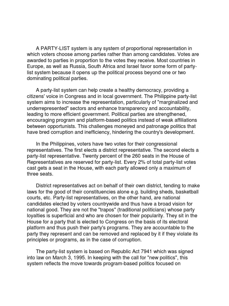 of 14 representatives), including Akbayan! and Sanlakas, received 2% of total