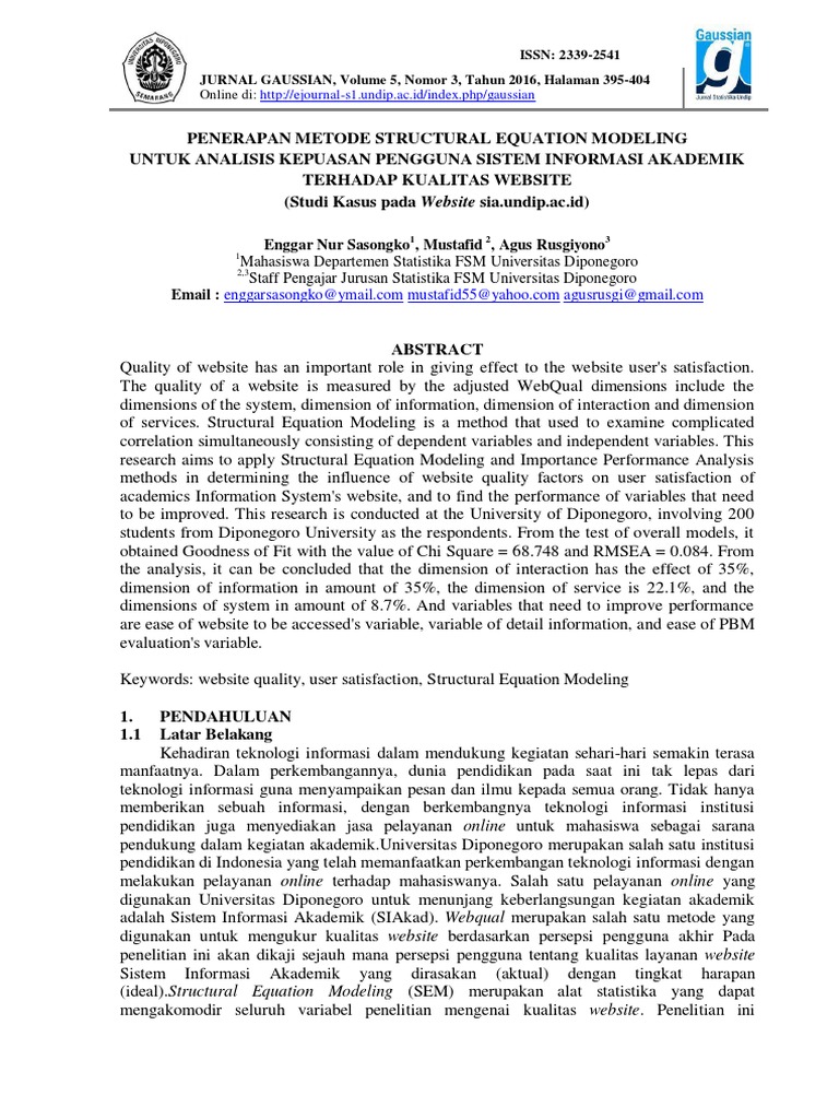menerapkan Structural Equation Modeling menganalisis faktor kualitas website terhadap