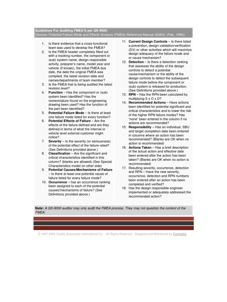Guidelines For Auditing FMEA’S per QS 9000:
