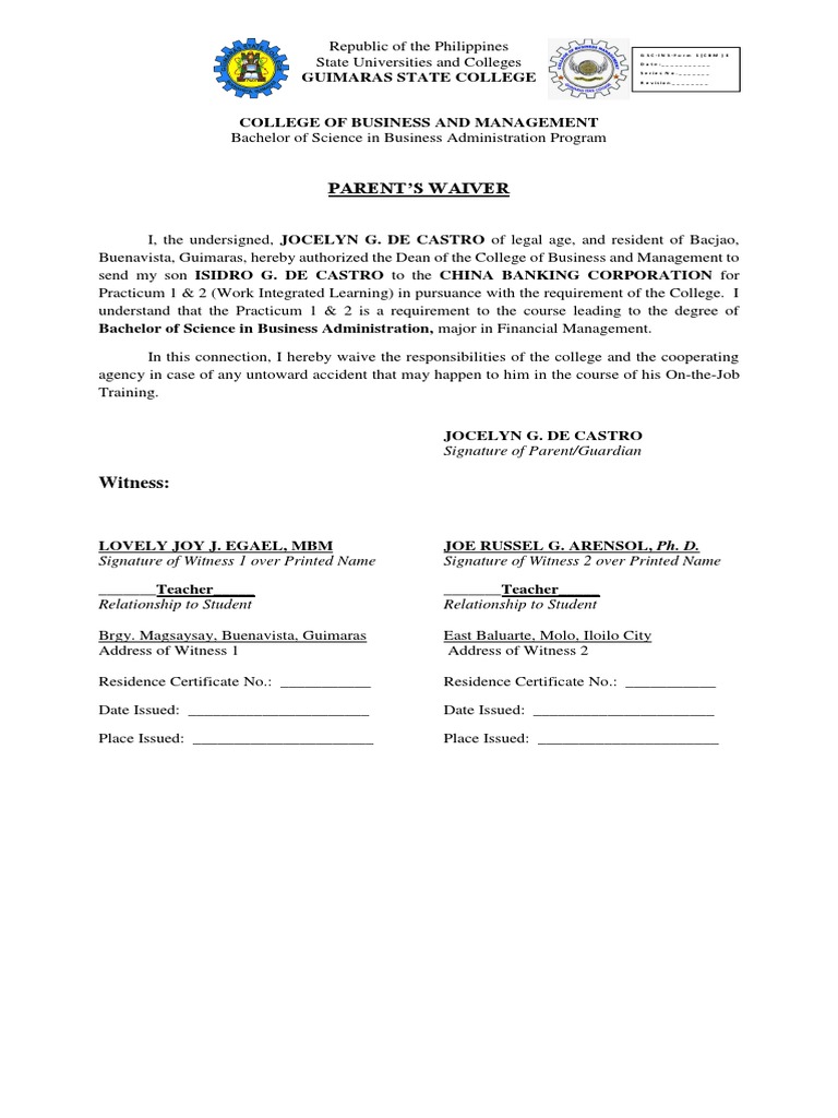 Buenavista, Guimaras, hereby authorized the Dean of the College of Business and Management to