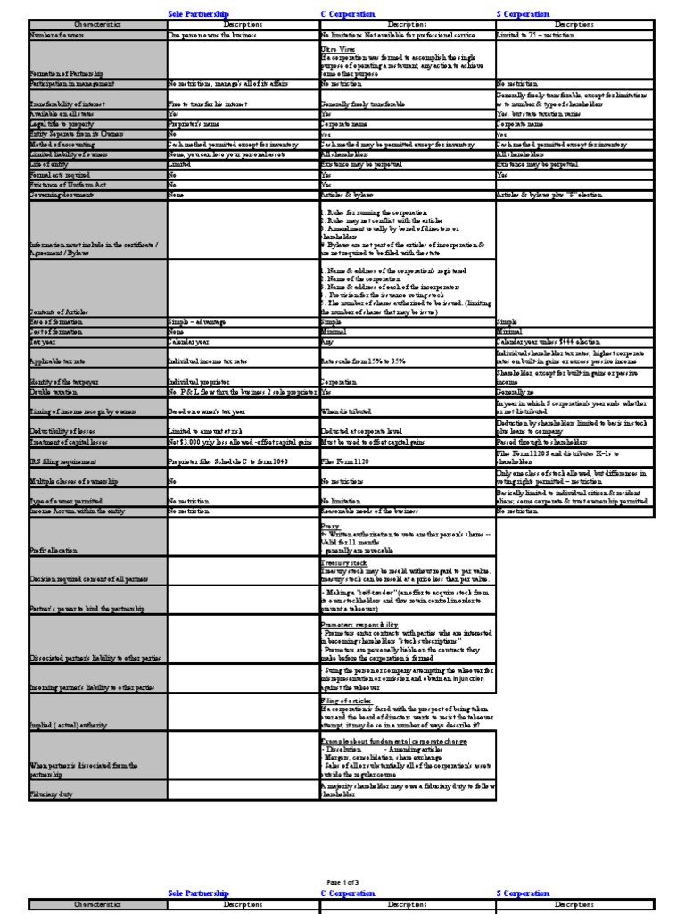 Sole Partnership C Corporation S Corporation