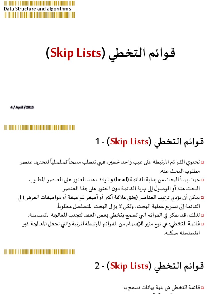 قائمة التخطي :هي نوع مثير لإلهتمام من القوائم املرتبطة املرتبة والتي تجعل املعالجة غير