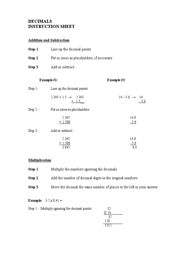Step 3 - Move the decimal the same number of places to the left in your answer.