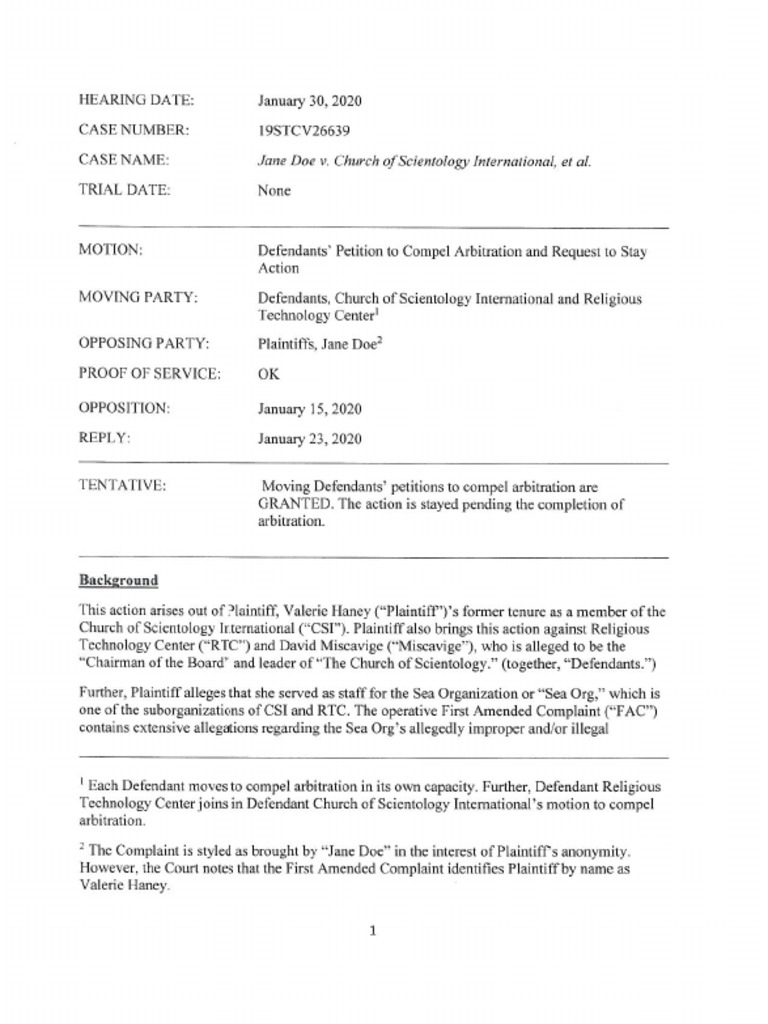 Save Haney v. Scientology: Arbitration Ruling For Later
