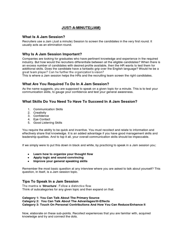 Recruiters use a Jam (Just a minute) Session to screen the candidates in the very first round. It