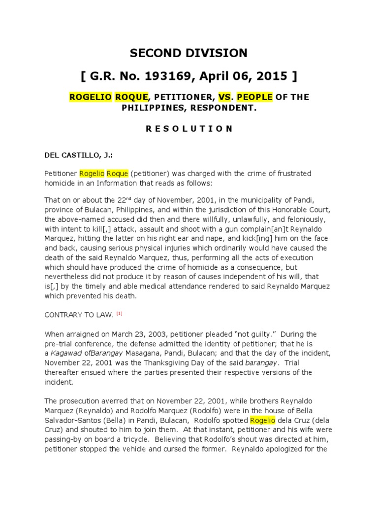 Petitioner Rogelio Roque (petitioner) was charged with the crime of frustrated