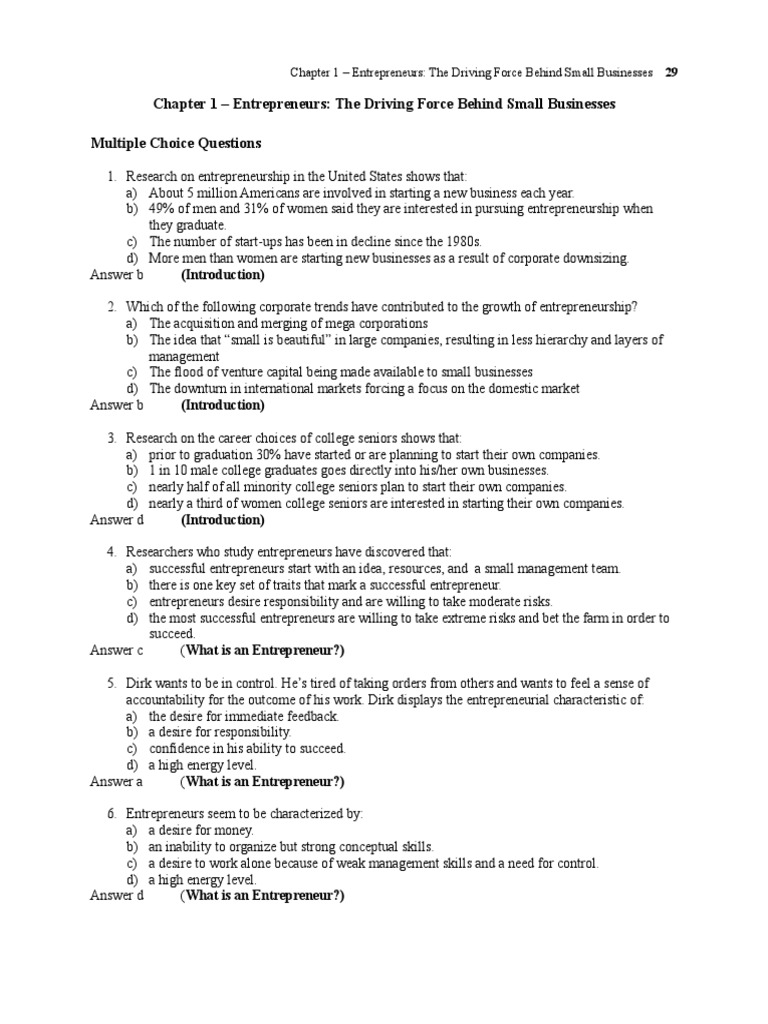 Answer c (What is an Entrepreneur?)