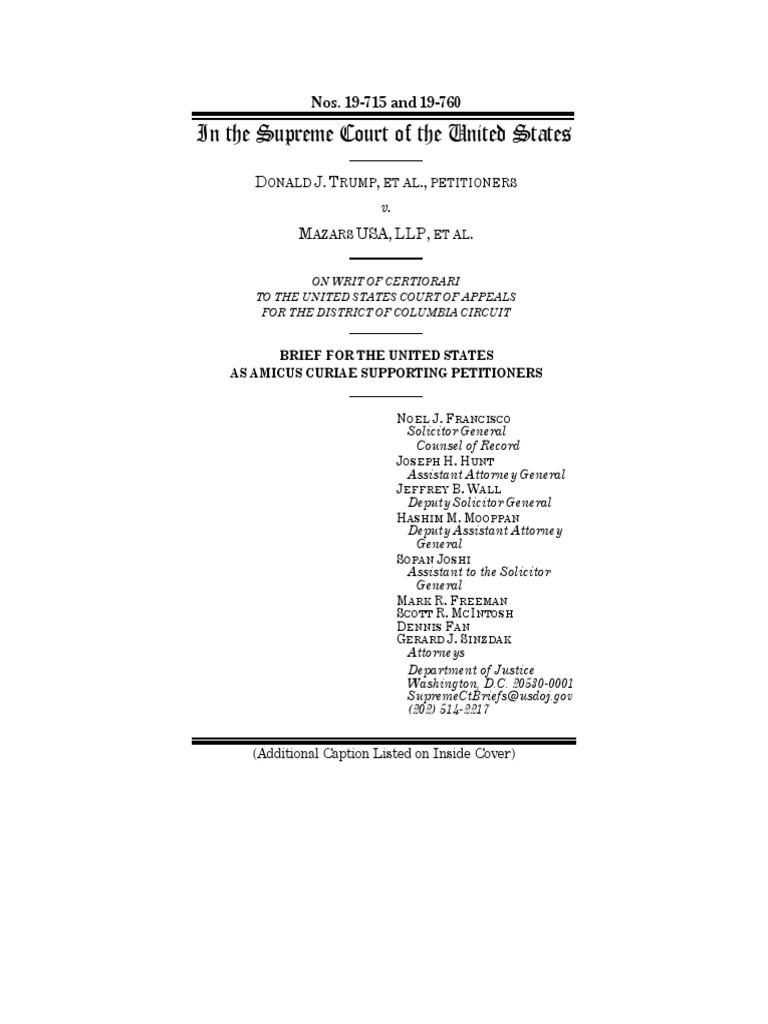 BRIEF FOR THE UNITED STATES AS AMICUS CURIAE SUPPORTING PETITIONERS
