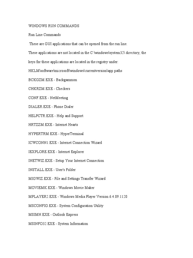 WINDOWS RUN COMMANDS