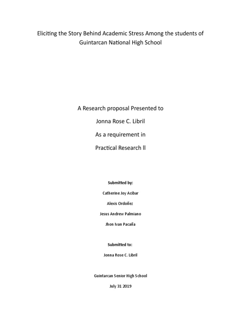 The goal of this research is to identify factors causing stress among students in Guintarcan national high