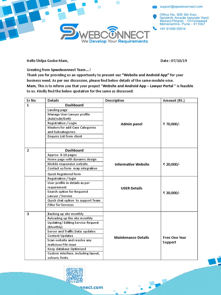 Mam, This is to inform you that your project “Website and Android App – Lawyer Portal ” is feasible
