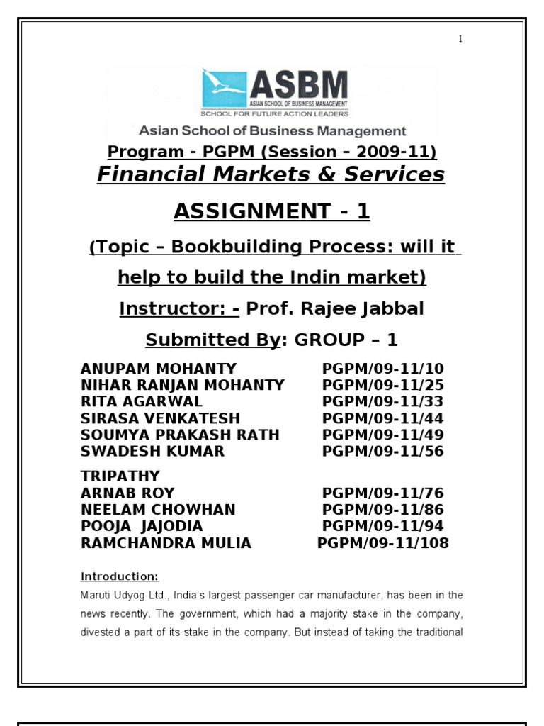 Bookbuilding Process for Ipos”, Last Accessed On 30 July 2010.