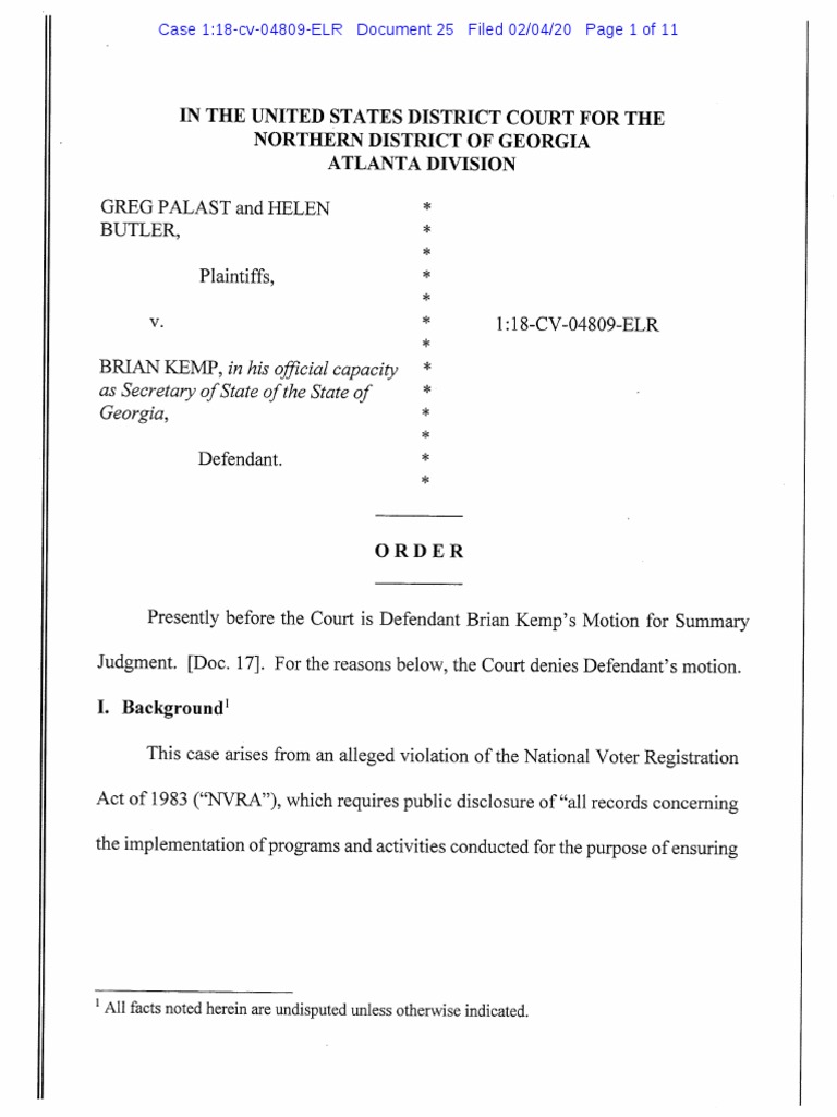 Presently before the Court is Defendant Brian Kemp's Motion for Summary