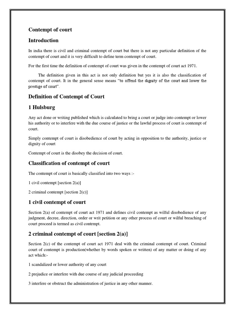 In india there is civil and criminal contempt of court but there is not any particular definition of the