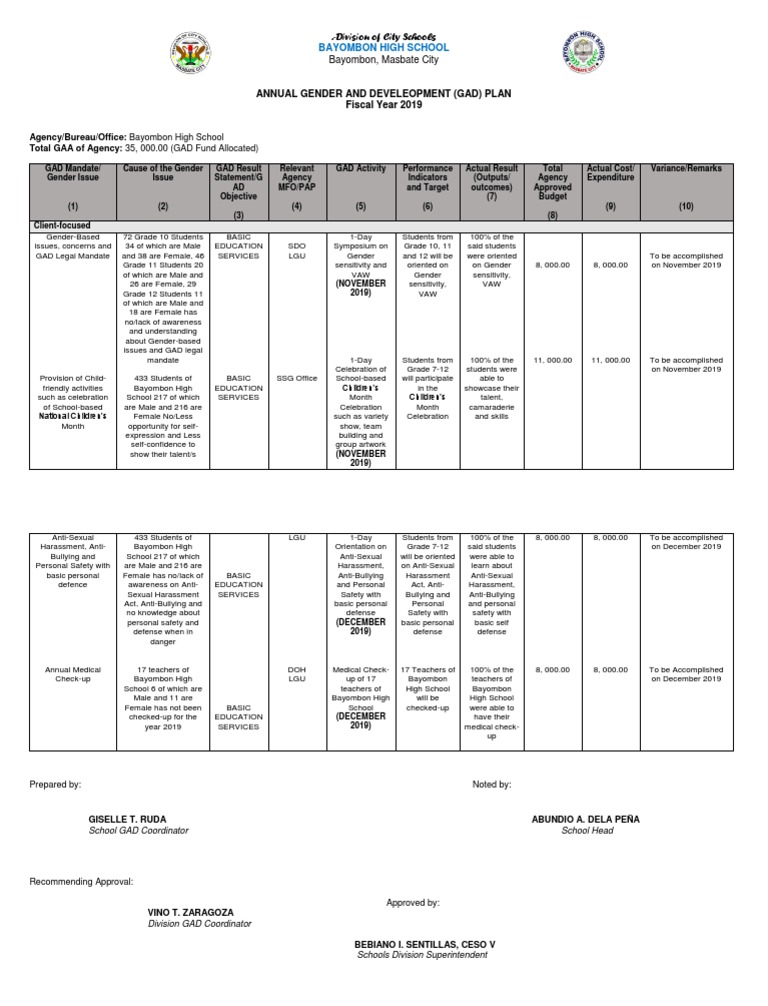 ANNUAL GENDER AND DEVELEOPMENT (GAD) PLAN