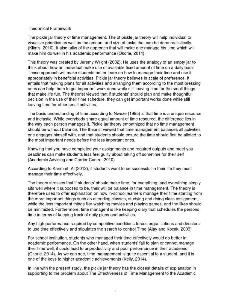 The pickle jar theory of time management. The of pickle jar theory will help individual to