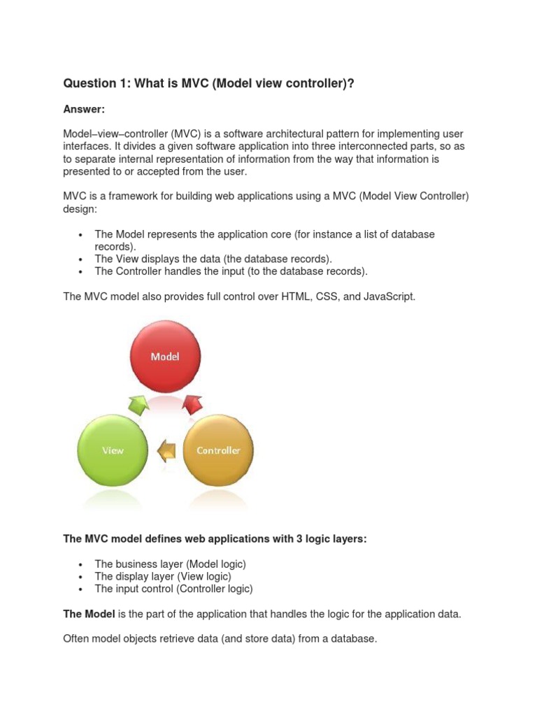 The MVC model also provides full control over HTML, CSS, and JavaScript.