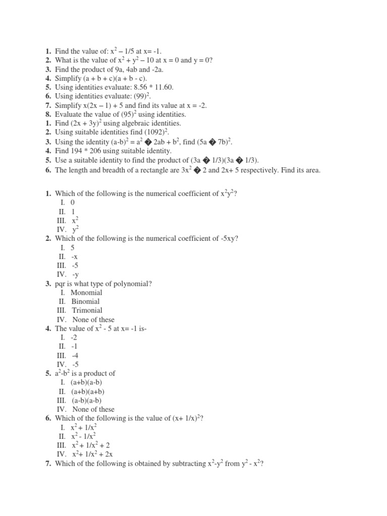 6. Using identities evaluate: (99)2.