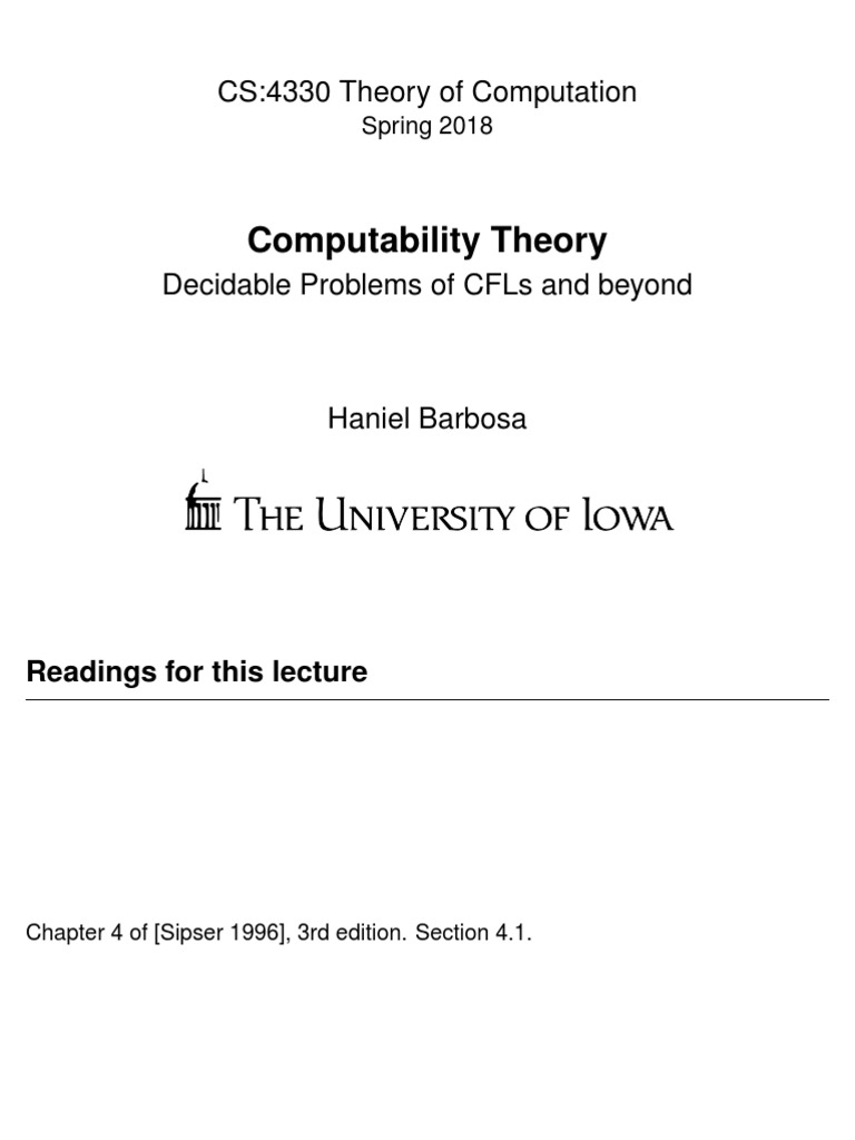 Chapter 4 of [Sipser 1996], 3rd edition. Section 4.1.