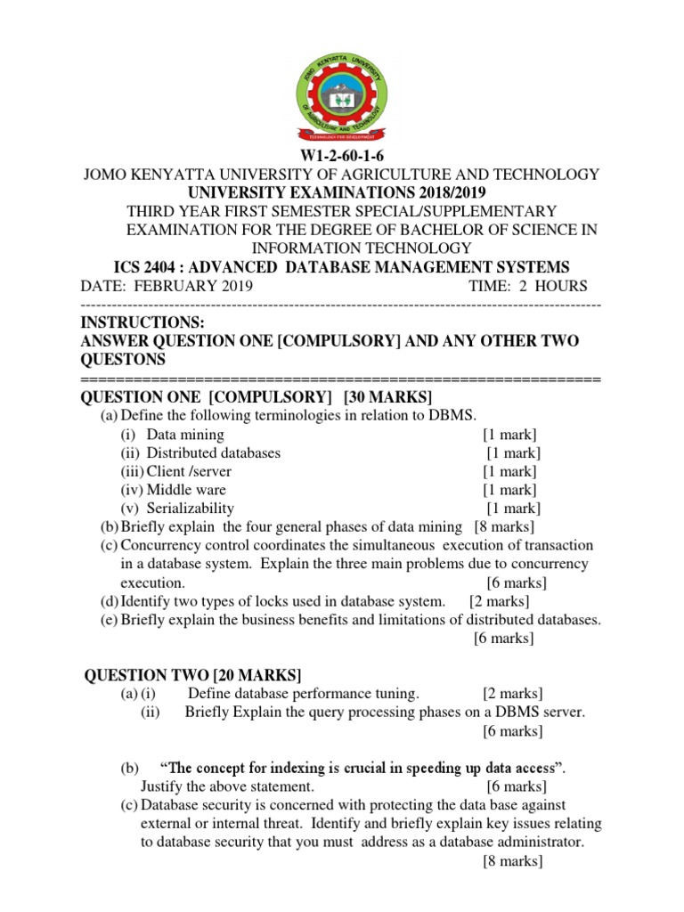 ICS 2404 : ADVANCED DATABASE MANAGEMENT SYSTEMS