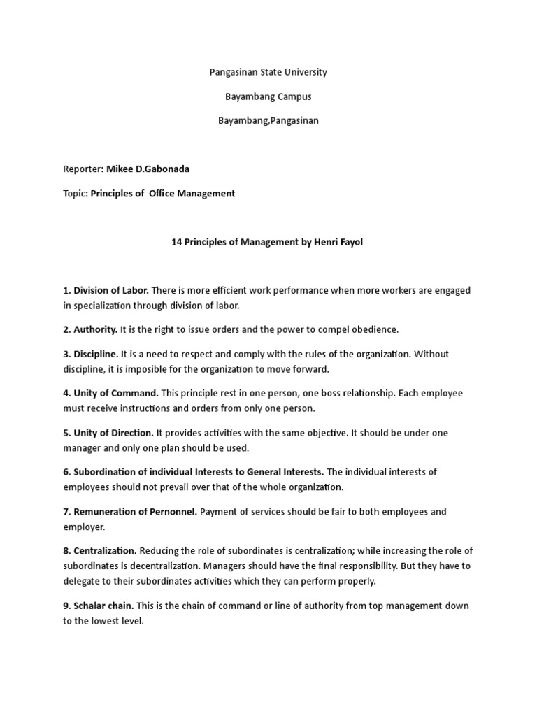 good in the organization. Fayol suggested the use of verbal communication instead of formal ,