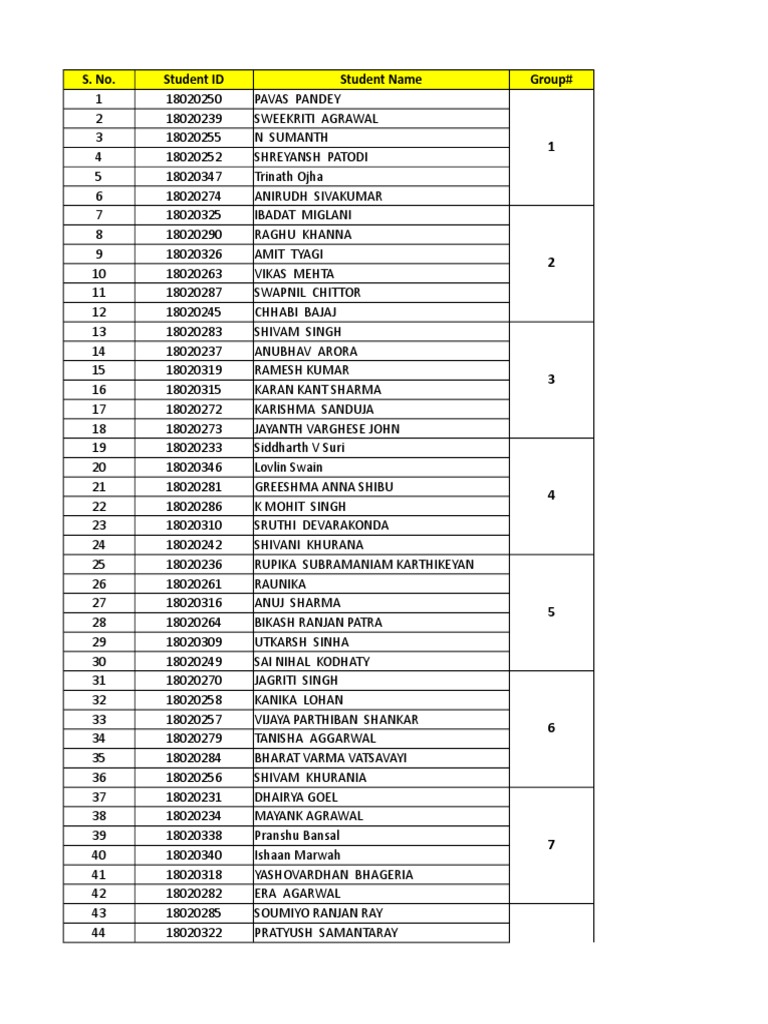 Student ID Student Name Group#