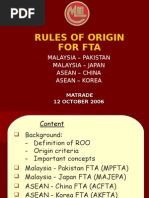 requirements set under each of the FTAs’ Rules of Origin (ROO).